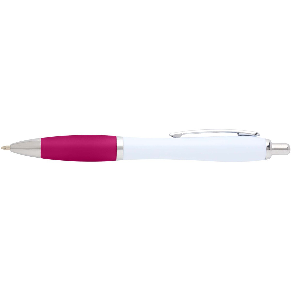 The Nash ballpoint with a stylish curvy design and a soft grip is made of recycled plastic that is hard and solid and thus offers a long life span. Ink colour: Black. Writing length: 1000 metres. Nib size: 1.00 mm.