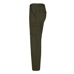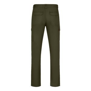 Multi-pocket twill trousers (190g/m²) in cotton (35%) and polyester (65%). With elasticated waistband and six pockets (2 French pockets, 2 side pockets and 2 back bellows pockets). Size: 34.36, 38, 40, 42, 44, 46, 48, 50, 52, 54, 56, 58, 60, 62, 64